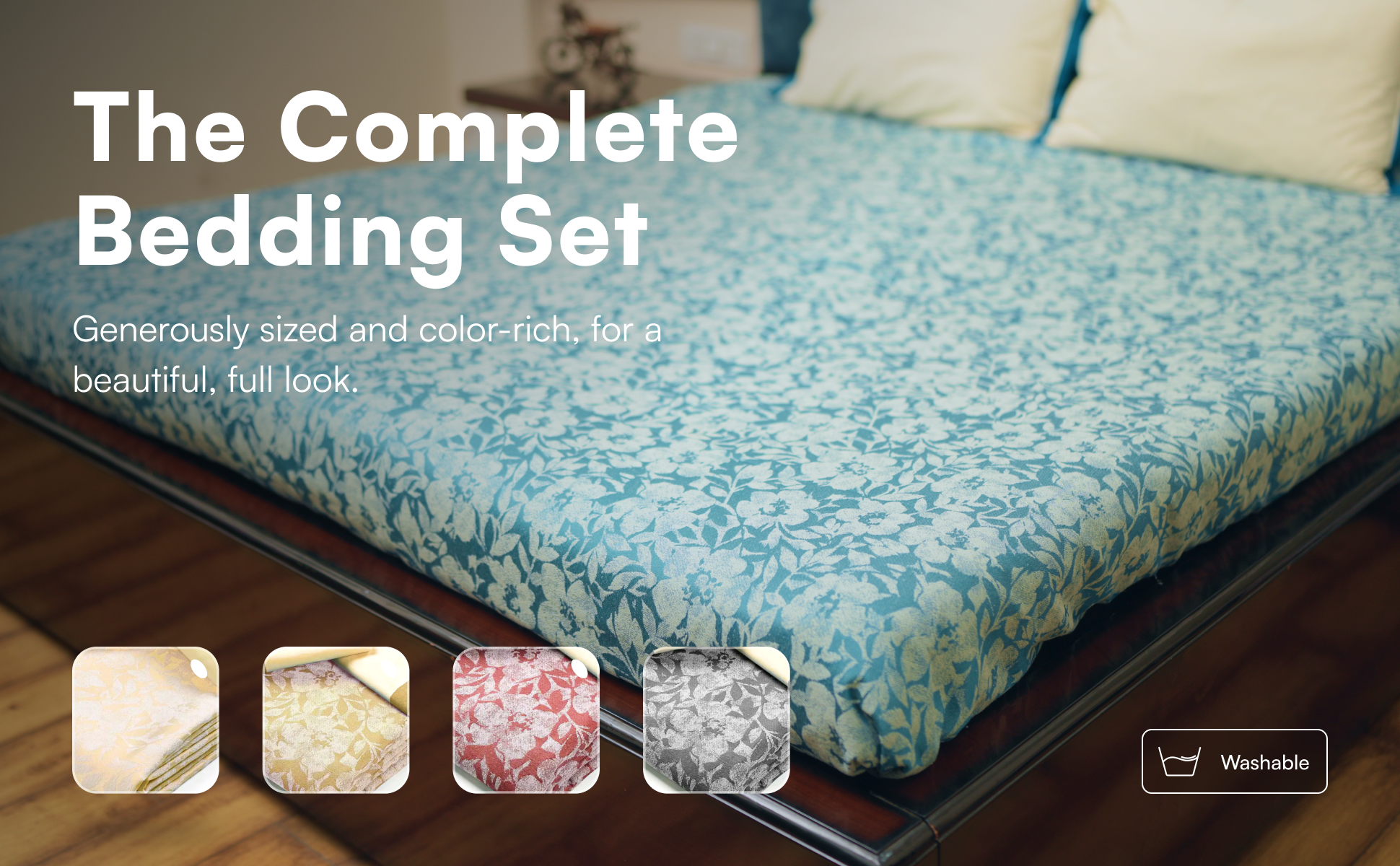KANAN Cotton Bed Cover-Sheet + 2 Pillow Covers