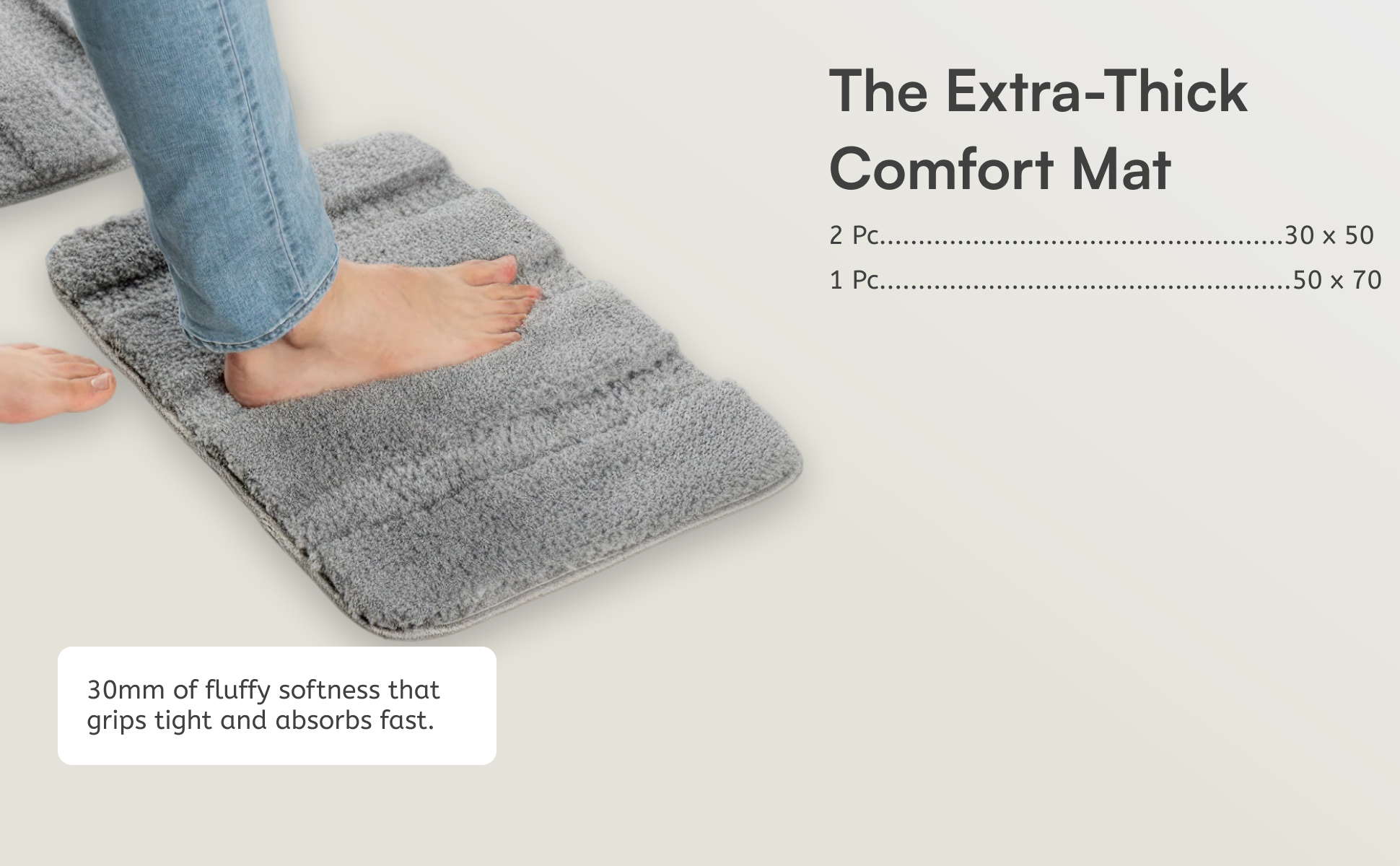 Big or small, there’s a mat that fits. The 35x50cm set gives you two mats for flexible use, while the 50x70cm option offers roomy coverage. Both are thick, fluffy, and built to last. Available in Grey, Light Blue, Pink, Green, and Brown, with a simple solid design that suits any space. Durable polyester microfiber stays soft and grippy wash after wash.